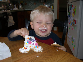 Will has been making many things at daycare lately. A few weeks ago he made this gingerbread cookie, I mean he decorated it, and so we let him eat as much of it as he wanted. He decided to share some of it with Erin and I, which was nice. It was very messy, which just made it more fun.